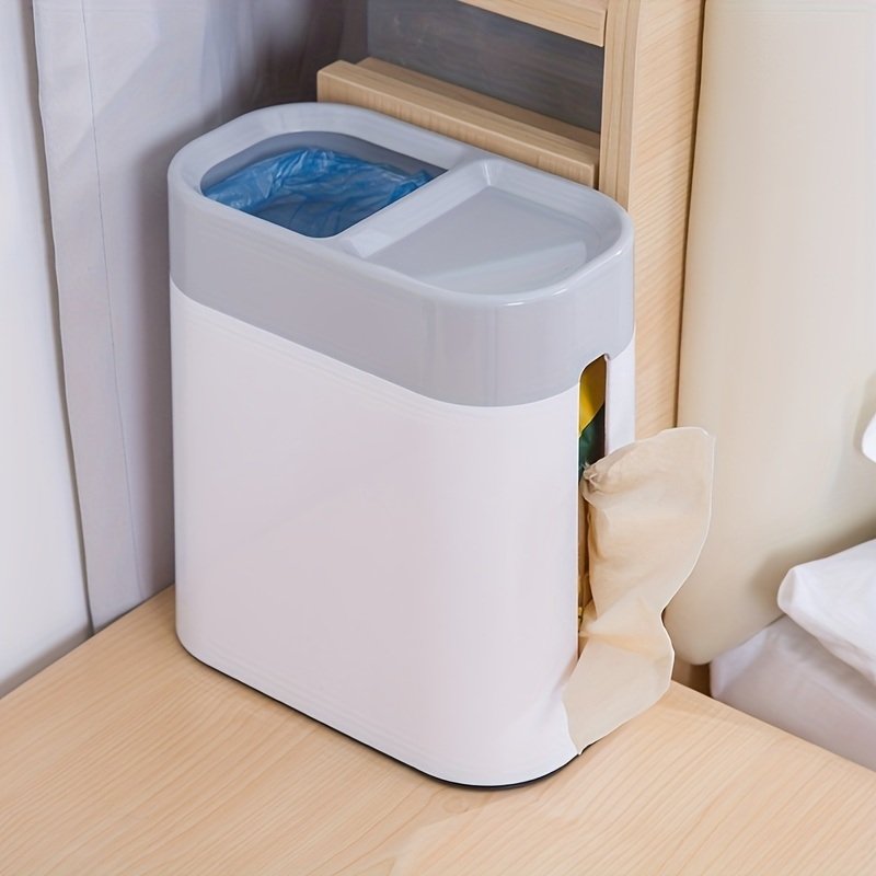 1pc 2 In 1 Desktop Trash Can With Tissue Box; Creative Plastic Mini Wastebasket; Trash Can; Garbage Bin; Rubbish Recycling For Desktop; Dressing Table